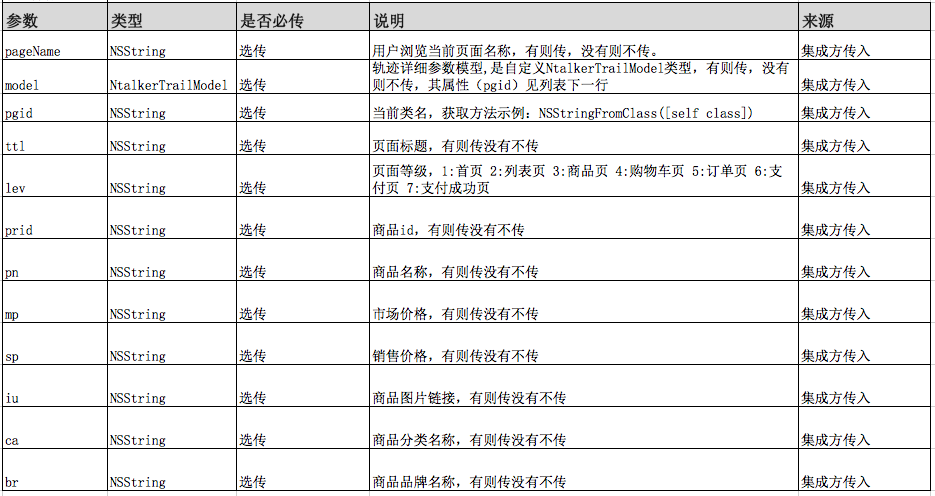 2.参数中除isStatic的key请参照标准集成中的NtalkerTrailModel中的字段;